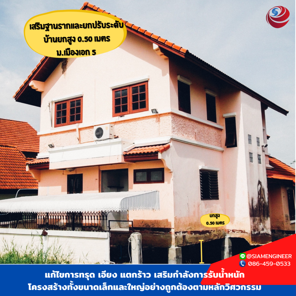 เสริมฐานราก และยกปรับระดับบ้านพักอาศัย 1.25 เมตร
