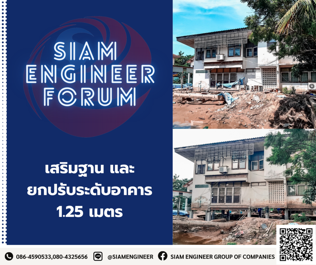 บริษัท สยาม เอ็นจิเนีย ฟอรั่ม จำกัด ได้รับความไว้วางใจจากลูกค้าให้เข้าไปทำการแก้ไขฐานรากบ้านทรุดและยกปรับระดับสูง 0.50 เมตร ต.ท่าแร้งออก อ.บ้านแหลม จ.เพชรบุรี จากการสำรวจและการวิเคราะห์อาคารเดิม